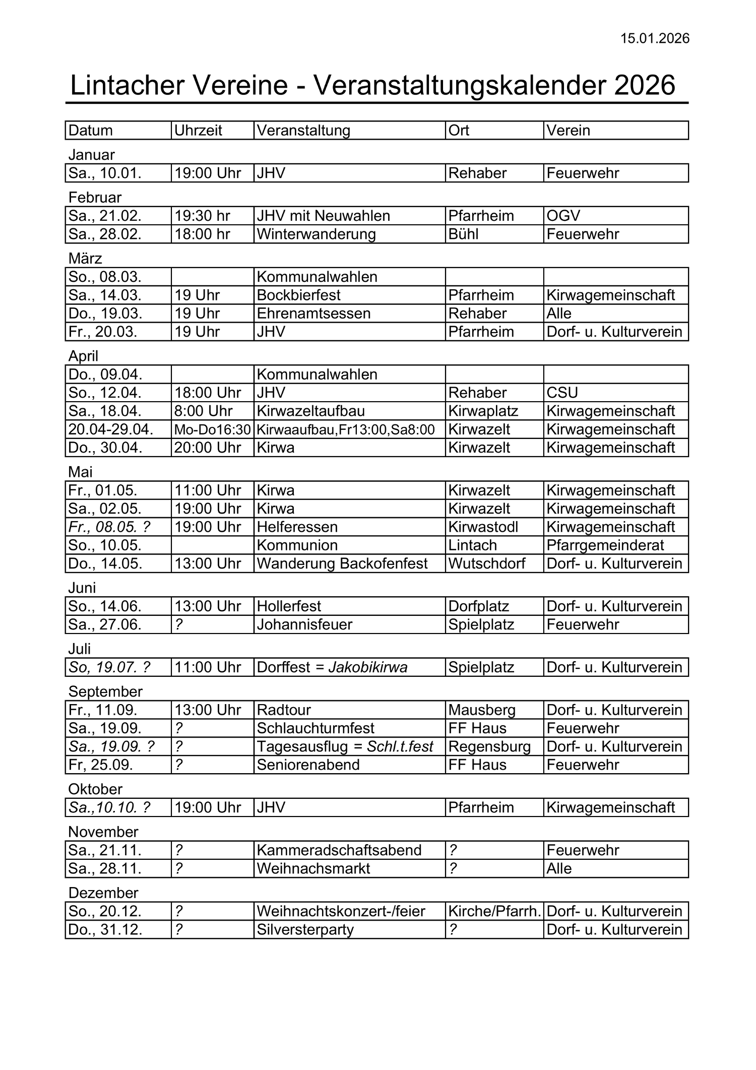 Die Termine der Lintacher Vereine und Gruppen 2026 hier zum Download.
